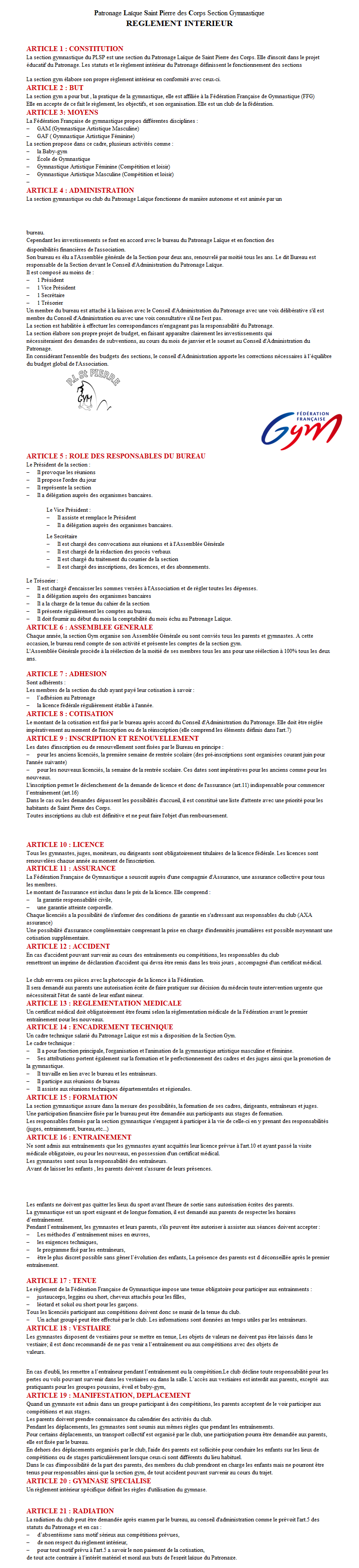Règlement intérieur